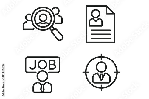 Modern Headhunting and Recruitment Line Icons Set – Job Search, Resume, Candidate Selection, HR Management, Career Opportunity, Business Hiring, Employment Process, Web and Mobile UI