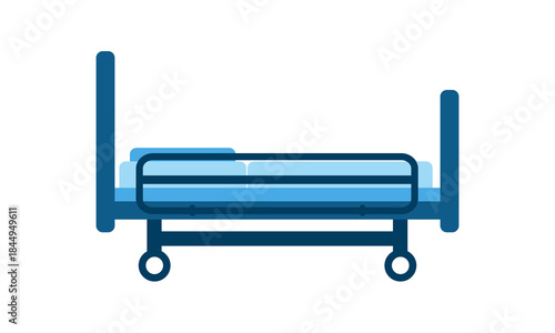 Modern Hospital Bed Vector Illustration with Wheels and Side Rails