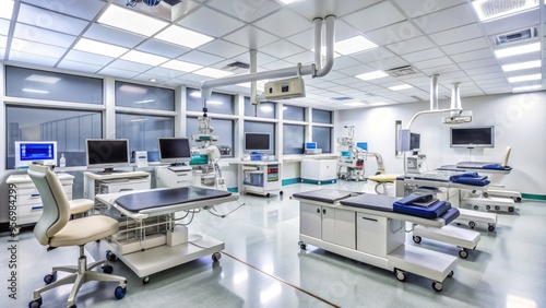 Modern hospital in Africa with state-of-the-art medical equipment, sleek computer screens, and sterile medical instruments, highlighting advanced healthcare technology in a developing nation.