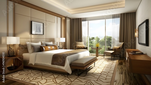 Modern Hotel Suite with Luxurious Bed and Panoramic View