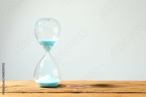 Modern hourglass on the table. Hourglass time concept for business deadline, urgency and outcome of time