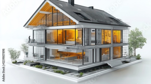 Modern house cutaway showcasing interior design, rooms, and architecture.