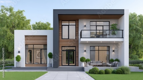 Modern house exterior design residential area architecture green environment front view contemporary aesthetics