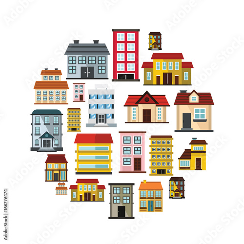 Modern house flat icons set on circle. Modern house vector illustration for design and web isolated on white background. Modern house vector object for labels, logos and advertising