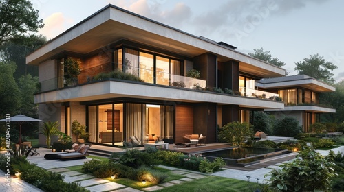 Modern House with a Swimming Pool and Lush Greenery
