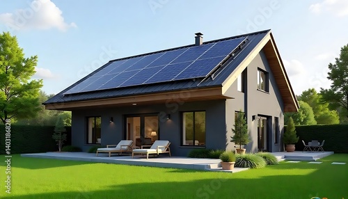 Modern house with solar panels and storage batteries, renewable energy, and eco-friendly living concept, created with generative ai
