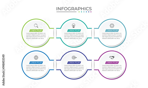 Modern infographic template. Creative circle element design with marketing icons. Business concept with 6 options