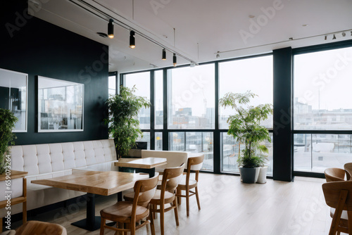 Modern interior design of a Restaurant-coffeeshop. Concept of the best coworker space