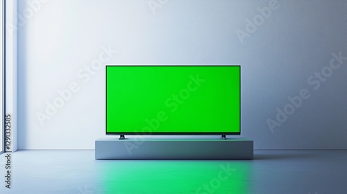 Modern Interior Showcase with Green Screen TV Display for Digital Content Creation