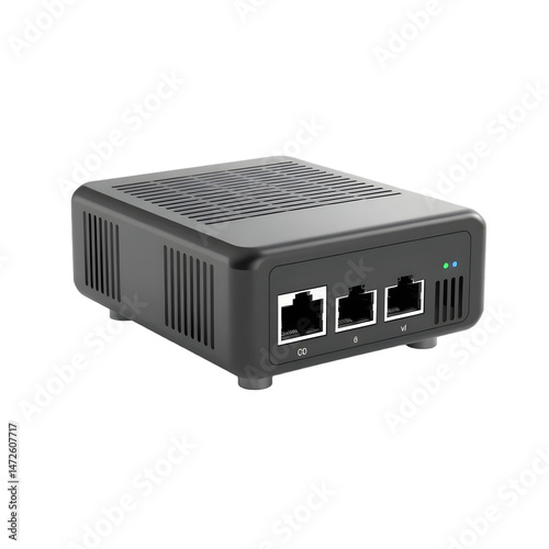 Modern Internet Connection Device, A 3d Rendered Modem. Features Ethernet Ports, Led Indicators, And A Compact Design. It Is Ideal For Visualizing Network Connectivity. Simple Product Shot.