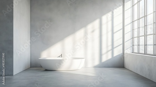 Modern Japandi bathroom interior design in white tones white polished concrete floor microcement walls Japandi or Wabi sabi concept : Generative AI