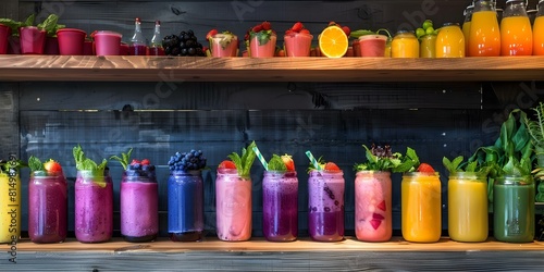Modern juice bar serving freshly made plant-based drinks using locally sourced ingredients. Concept Juice Bar, Fresh Ingredients, Plant-based drinks, Local Sourcing, Modern Setting