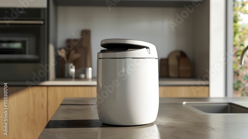 Modern kitchen compost bin design eco-friendly living kitchen minimalist style close-up sustainable concept