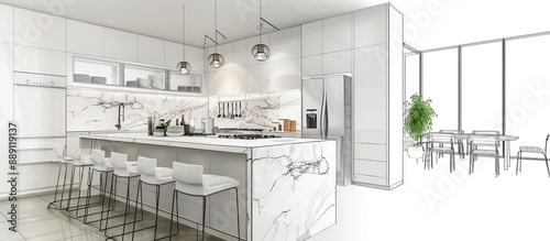 Modern Kitchen Interior Design with Marble Countertops