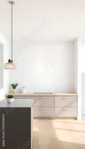 Modern Kitchen Interior Empty Blank Wall Mockup Template Display