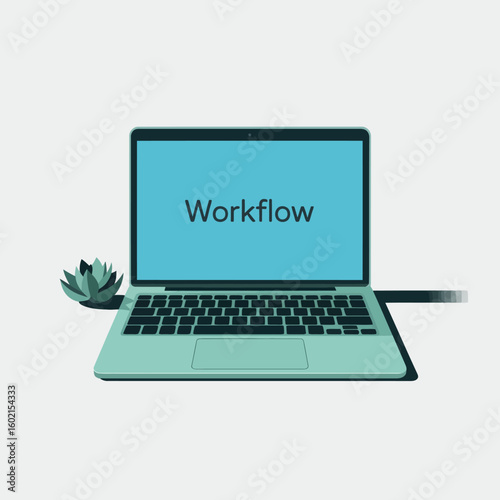 Modern laptop with the word workflow on the screen, illustrating a concept of business process and productivity in a digital workplace.