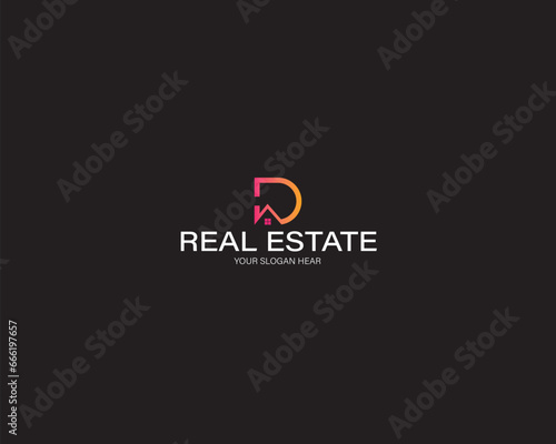 Modern Letter D and real estate logo design template