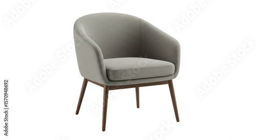 Modern Light Gray Fabric Armchair with Wooden Legs.
