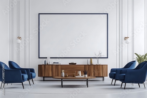 Modern Living Room Interior with Blue Velvet Chairs
