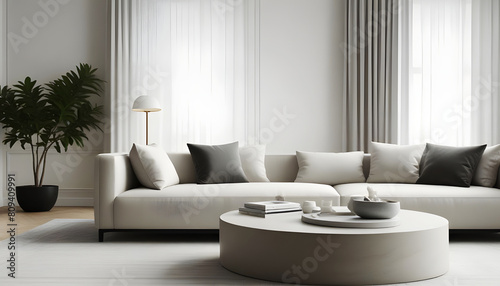 modern living room minimalist design and luxury furniture and decor. Generative AI