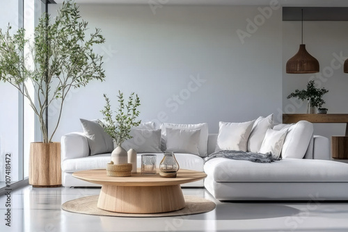 modern living room Style Studio apartment with white corner sofa Scandinavian home interior design