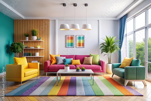 Modern Living Room with Colorful Furniture and Decor.