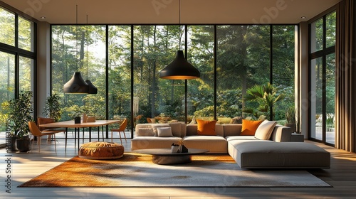 Modern Living Room with Forest View (1)