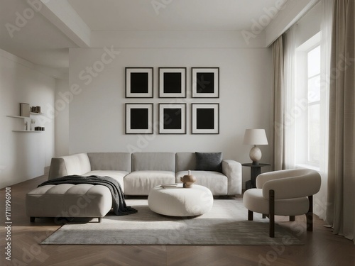 Modern Living Room with Neutral Tones and Geometric Wall Art