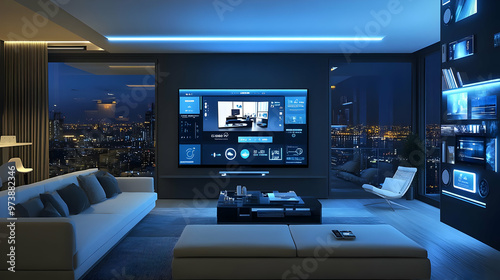 Modern Living Room with Smart Home Automation System 3D Illustration
