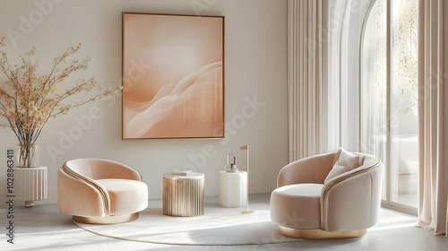 Modern lounge area featuring stylish chairs and soft decor.