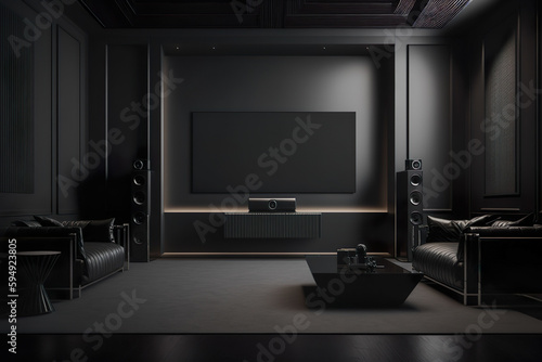 Modern Luxury Dark Living Room Interior Mock Up - Generative AI