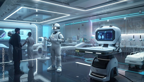 Modern medical office for surgery. Use of robot and artificial intelligence in medicine.
