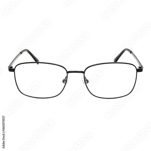 Modern metal frame eyeglasses with clear lenses isolated on transparent background