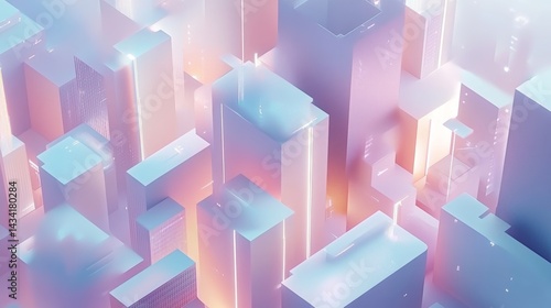 Modern metropolis glowing softly in ambient light, featuring futuristic architecture and creating a serene urban atmosphere filled with tranquility and dreamlike beauty