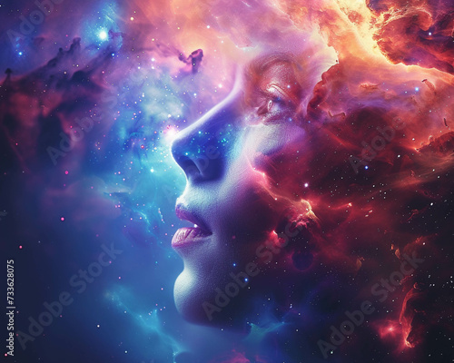 Modern minds navigate emotional turmoil guided by nebulas serene light
