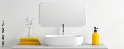 Modern Minimalist Bathroom with White Sink and Yellow Accents