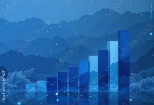 Modern Minimalist Blue Bar Graph Line Overlay Gradient Background - Data Visualization Business Growth Analytics