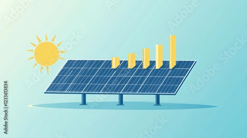 modern minimalist concept featuring a solar panel and bar graph, highlighting sustainability, renewable energy, and green innovation with copy space
