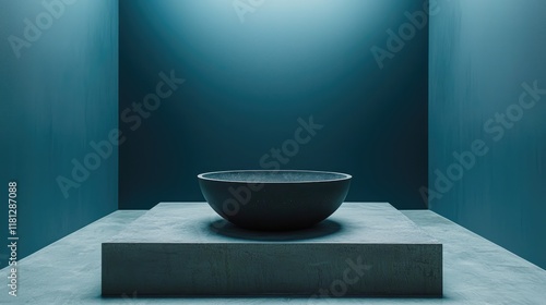 Modern Minimalist Concrete Bowl in Teal Room: A Study in Simple Elegance and Geometric Design