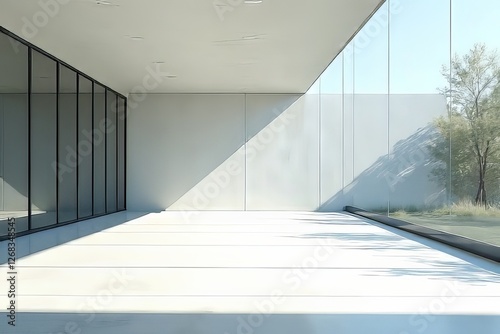 Modern Minimalist Exterior Space with Glass Walls and Concrete