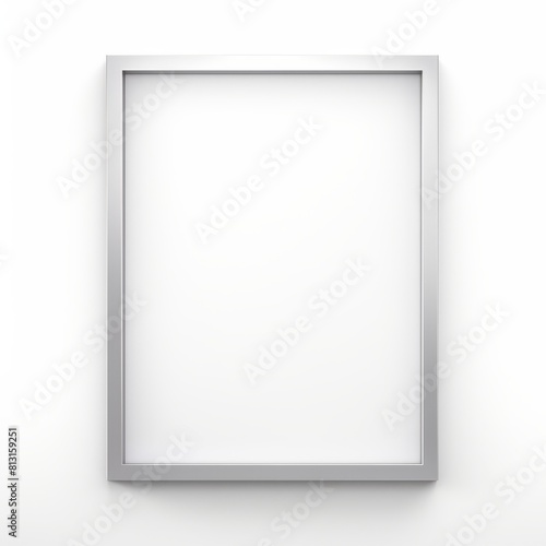 Modern Minimalist Frame. Blank white square frame on a white wall, mockup for design presentation.