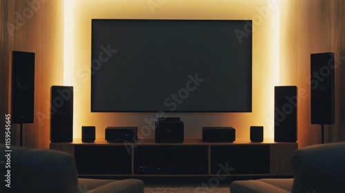 Modern minimalist home theater with minimal decor. Featuring clean lines and an immersive design