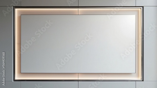 Modern Minimalist Interior Design, Blank Rectangular Panel with Subtle Backlighting in Grey Wall Setting. Perfect for Mockups, Presentations, and Advertising