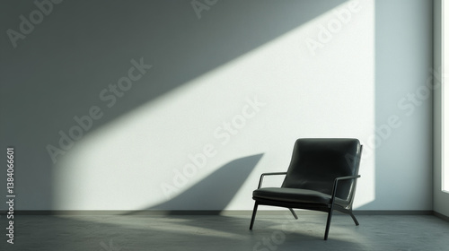 Modern minimalist interior with an armchair on empty white wall background.3D rendering