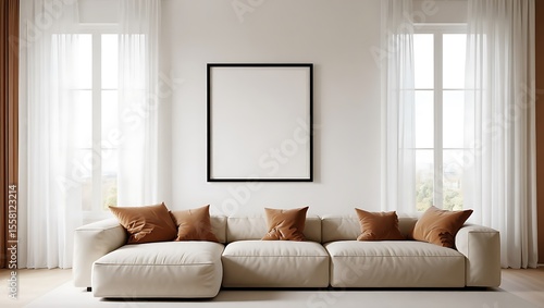 Modern Minimalist Living Room Interior with Neutral Tones and Wooden Accents