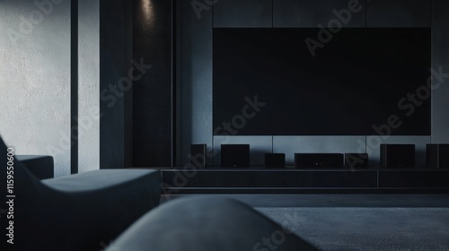 Modern minimalist media room with minimal decor. Featuring clean lines and a stylish design