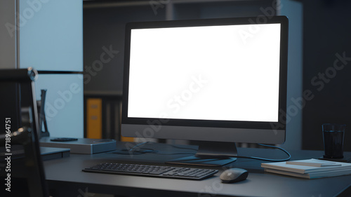 Modern minimalist office setup with blank screen computer ready for your creative content and focused work