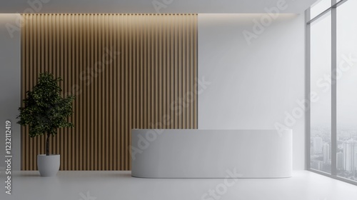Modern Minimalist Reception Area with Stylish Wooden Wall Design