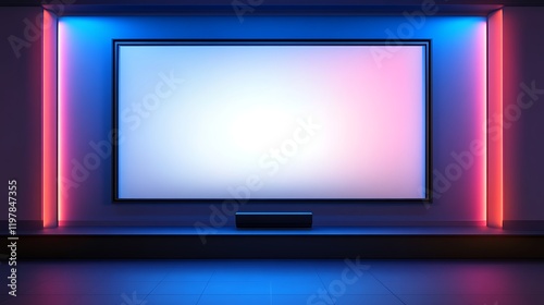 Modern Minimalist Room With Blank Screen And Neon Lights