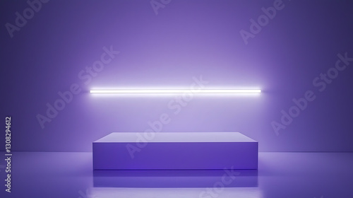 Modern minimalist room with purple lighting contemporary interior art space bright environment straight view design focus